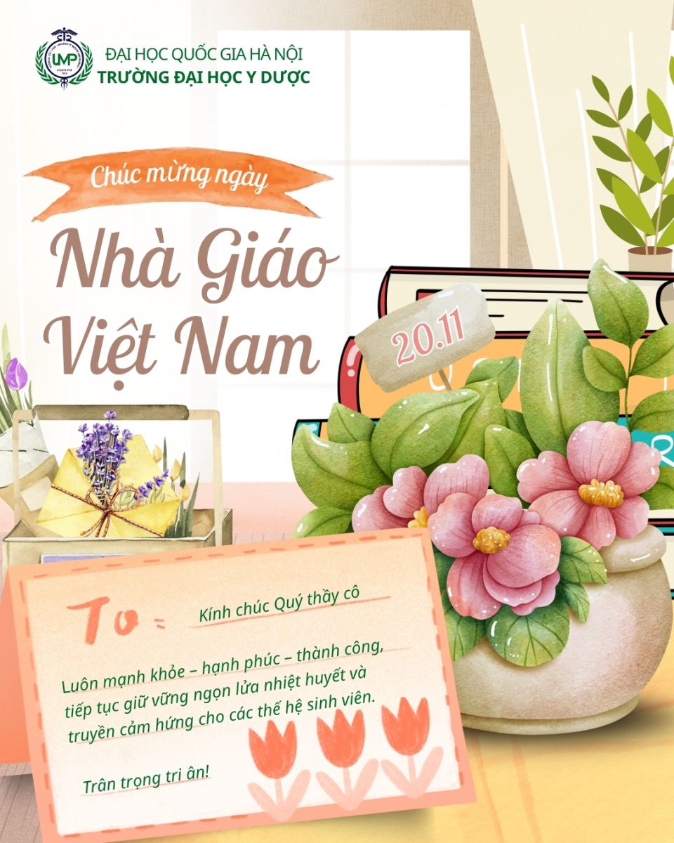 Nhân dịp Ngày Nhà giáo Việt Nam 20/11, Trường Đại học Y Dược trân trọng gửi tới Quý Thầy Cô lời tri ân sâu sắc và những lời chúc mừng tốt đẹp nhất. Trong suốt thời gian qua, Quý Thầy Cô đã không ngừng nỗ lực, cống hiến và tận tâm trong công tác giảng dạy, nghiên cứu khoa học và đào tạo đội ngũ cán bộ y tế có trình độ cao, giàu y đức. Những đóng góp quý báu ấy đã góp phần quan trọng vào sự phát triển của Nhà trường và sự nghiệp chăm sóc sức khỏe cộng đồng.
