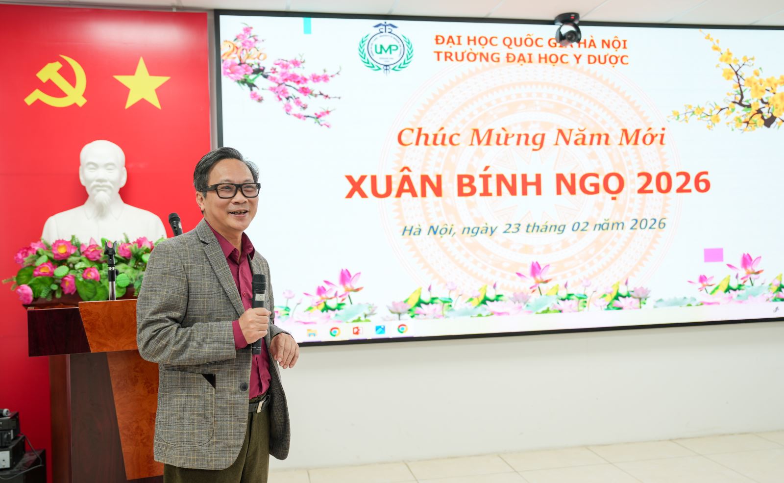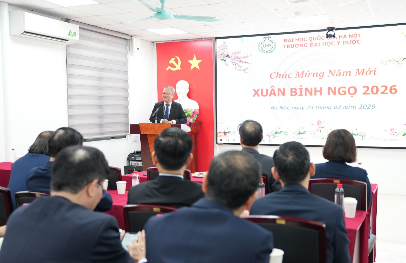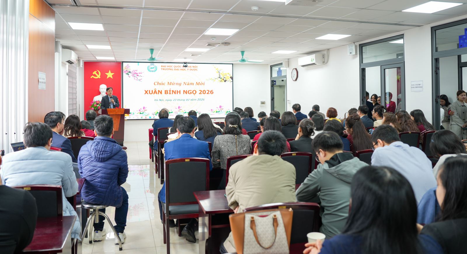 Sáng ngày 23/02/2026 (mùng 7 Tết), trong không khí rộn ràng và ấm áp của những ngày đầu xuân Bính Ngọ, Trường Đại học Y Dược, Đại học Quốc gia Hà Nội đã tổ chức buổi gặp mặt đầu năm với sự tham dự của toàn thể cán bộ, giảng viên và nhân viên Nhà trường.
