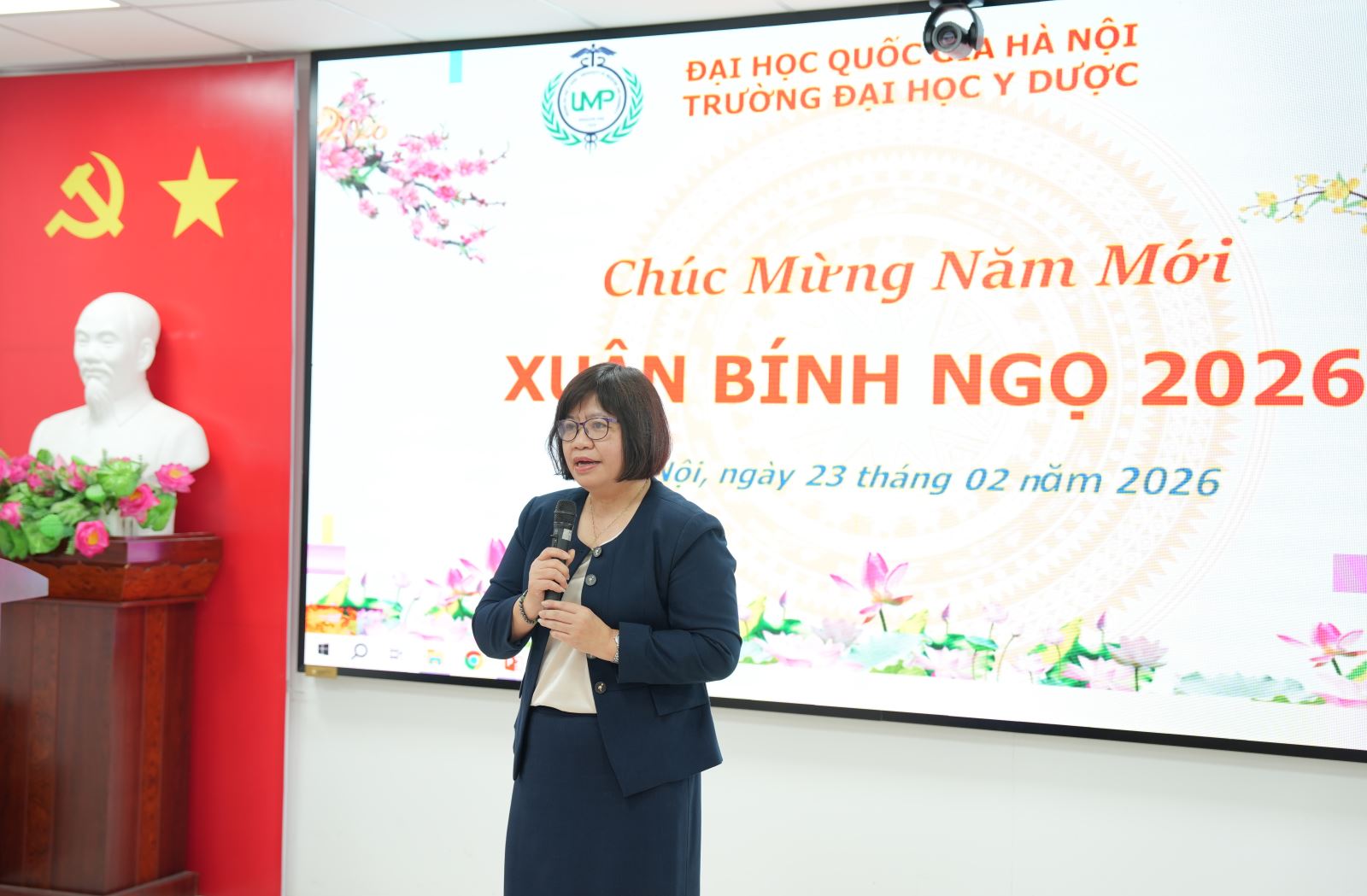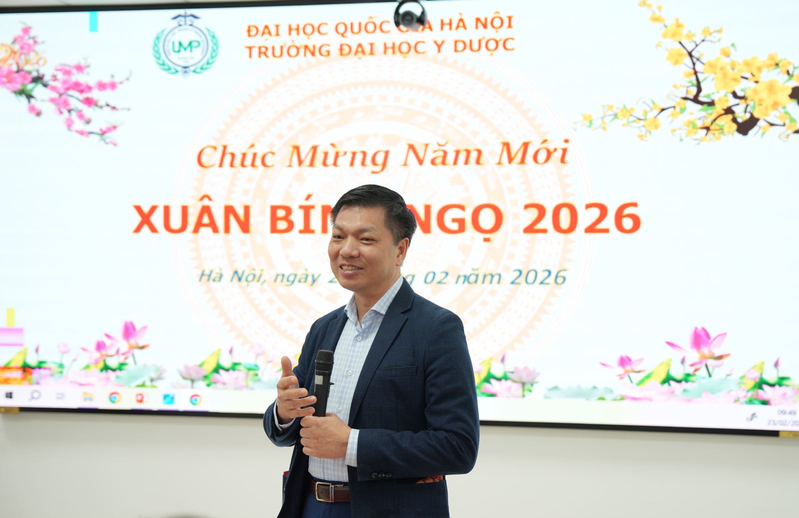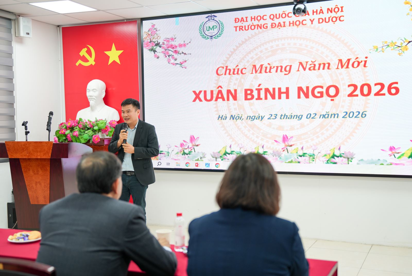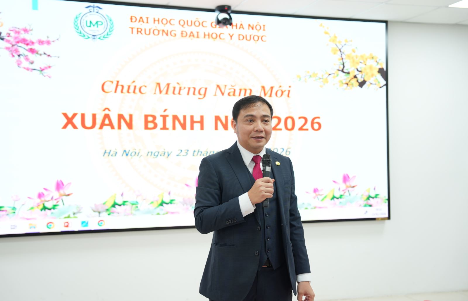 Sáng ngày 23/02/2026 (mùng 7 Tết), trong không khí rộn ràng và ấm áp của những ngày đầu xuân Bính Ngọ, Trường Đại học Y Dược, Đại học Quốc gia Hà Nội đã tổ chức buổi gặp mặt đầu năm với sự tham dự của toàn thể cán bộ, giảng viên và nhân viên Nhà trường.