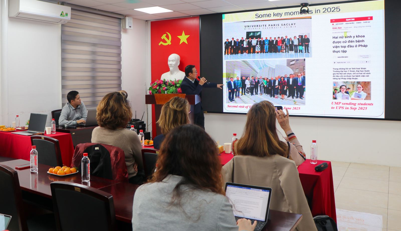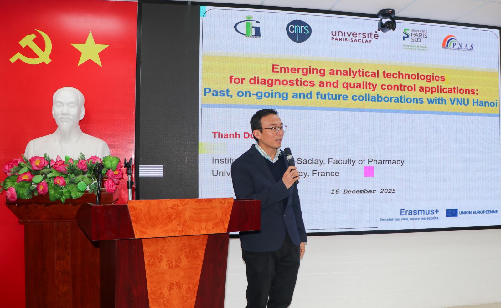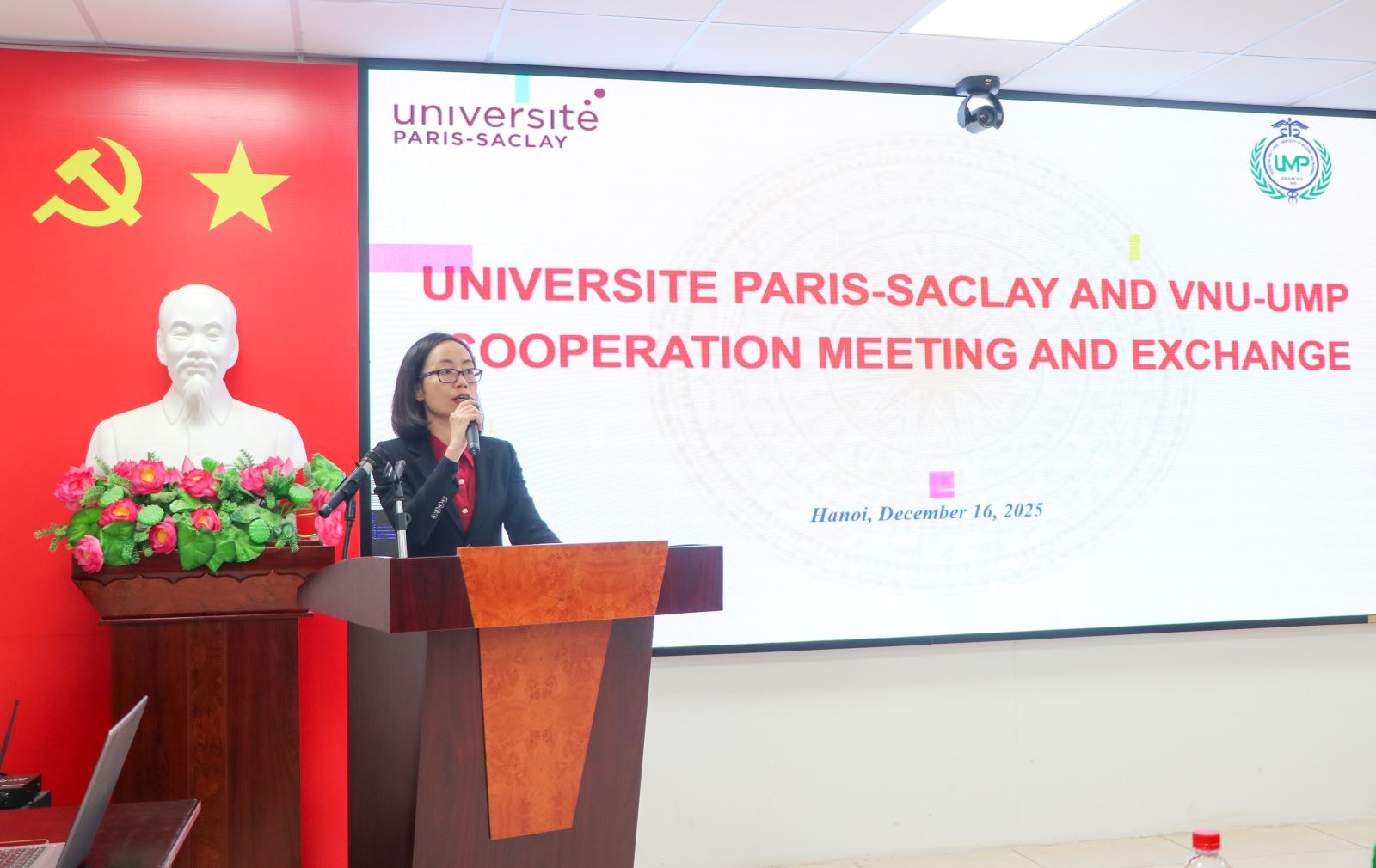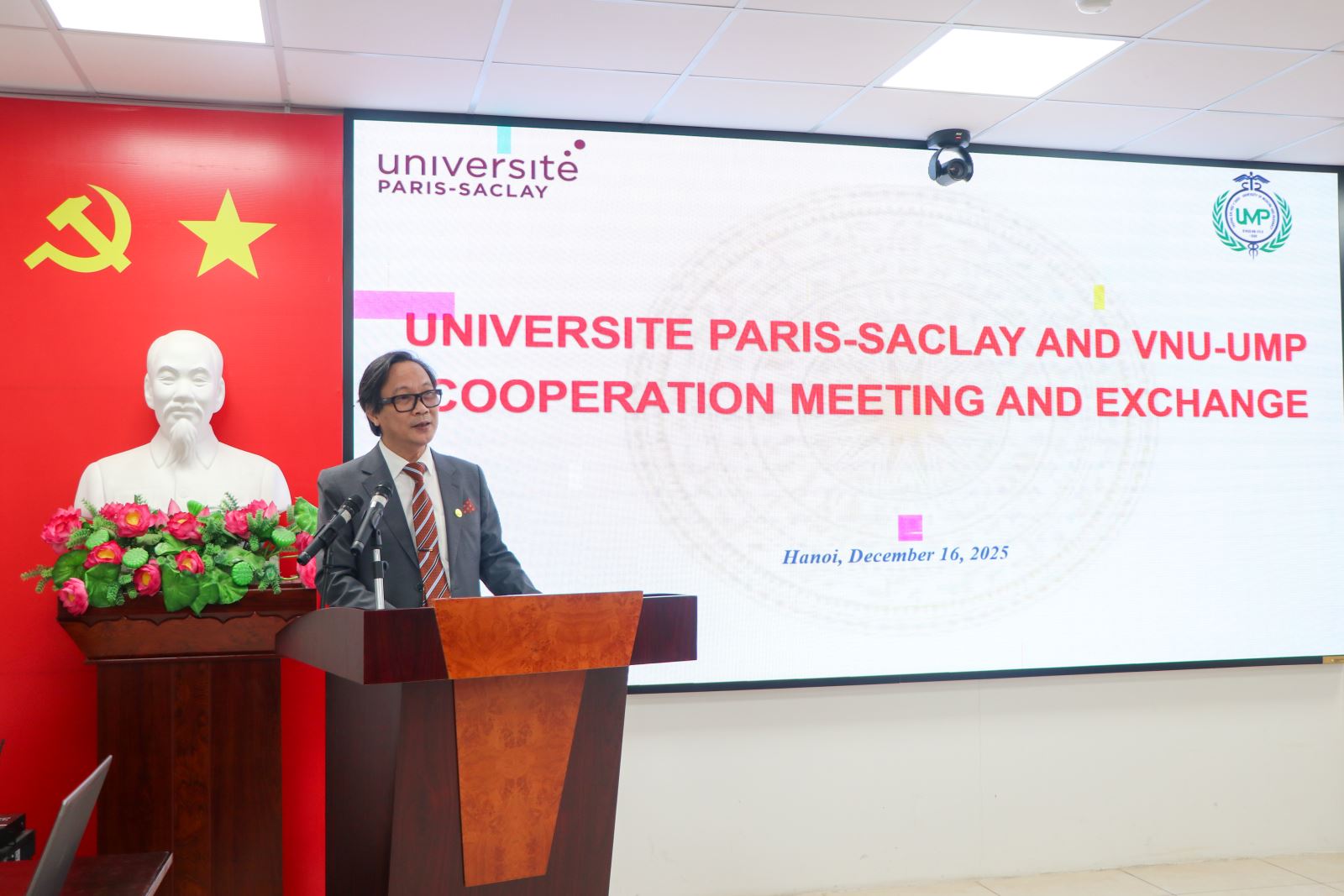 Ngày 16/12/2025, Khoa Dược – Trường Đại học Y Dược, Đại học Quốc gia Hà Nội (VNU-UMP) đã trang trọng tiếp đón đoàn công tác của Đại học Paris-Saclay (Université Paris-Saclay – UPS, Pháp) đến thăm và làm việc. Chuyến công tác nằm trong chuỗi hoạt động thúc đẩy hợp tác giữa hai đơn vị, hướng tới mở rộng kết nối trong đào tạo sau đại học, nghiên cứu khoa học, chuyển giao công nghệ và đổi mới sáng tạo trong lĩnh vực Dược học.