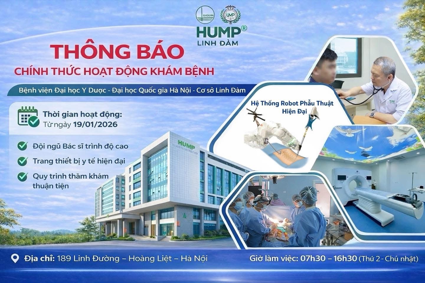 Bệnh viện Đại học Y Dược - ĐHQGHN - Cơ sở Linh Đàm trân trọng cảm ơn sự quan tâm, đồng hành và ủng hộ của Quý bà con và Quý khách hàng trong thời gian tới.